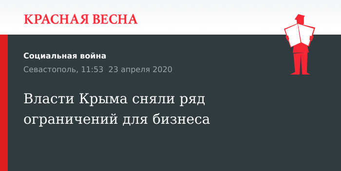 Глава Крыма Сергей Аксенов отметил, что список разрешенных видов деятельности может быть еще расширен в соответствии с эпидемиологической ситуацией, но уже после 1 мая — до 30 апреля в регионе действует режим самоизоляции.