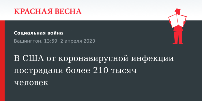 В США от коронавирусной инфекции пострадали более 210 тысяч человек