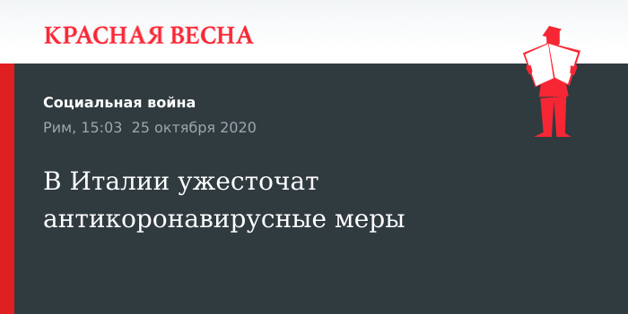 Меры борьбы с коронавирусом в Италии будут ужесточены, 25 октября передает канцелярия председателя Совета министров страны.
