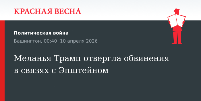 Обвинения в личных связях со скандальным финансистом Джеффри Эпштейном опровергла первая леди США Меланья Трамп, назвав их попыткой дискредитации. Об этом она заявила во время выступления в Белом доме, 9 апреля сообщил The Guardian.