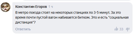 Пользователи Игорь и Константин Егоров напомнили о массовых скоплениях пассажиров метро. По мнению комментаторов, переполненный транспорт никак не обеспечил социальную дистанцию.