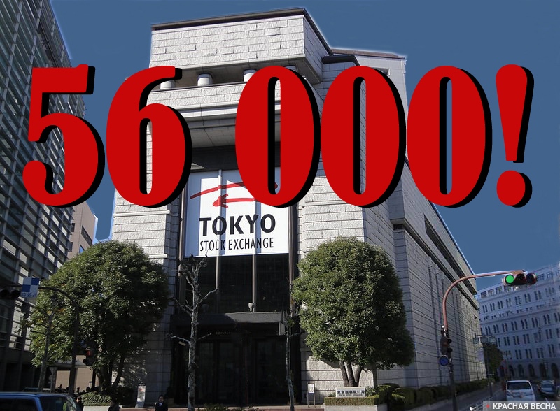 Индекс Nikkei, суммирующий данные по 225 ведущим компаниям страны, по итогам торгов понедельника вырос на 2110,26 пункта (максимальный дневной рост с 6 октября), или на 3,89%, и составил рекордные 56 363,94 после кратковременного скачка более чем на 5%, в результате которого индекс впервые кратковременно превысил границу в 57 000 пунктов.
