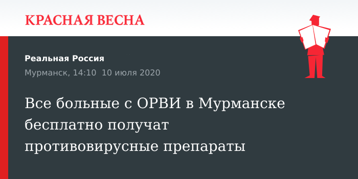 Решение о выдаче противовирусных препаратов бесплатно всем больным ОРВИ без проведения предварительного теста на коронавирус приняло правительство Мурманской области, сообщает 10 июля оперативный штаб региона по борьбе с коронавирусом на своей странице во «ВКонтакте».