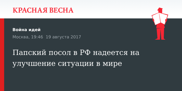 Папский посол в РФ надеется на улучшение ситуации в мире