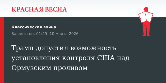 Трамп отметил, что «раздумывает об установлении контроля» над ключевым для мировой торговли нефтью проливом. Он также выразил мнение, что Иран «атаковал всё, что должен был атаковать».
