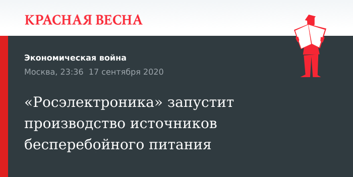 Производство источников бесперебойного электропитания для обеспечения непрерывной работы персональных компьютеров запустит холдинг «Росэлектроника» госкорпорации Ростех совместно с Фондом развития промышленности в 2021 году. Об этом 17 сентября сообщает портал cnews.