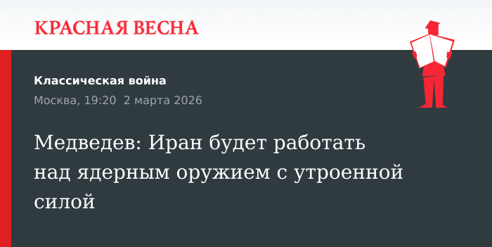 Уверенность в том, что после атаки США и Израиля Иран будет работать над созданием ядерного оружия с утроенной силой, выразил заместитель председателя Совбеза РФ Дмитрий Медведев 2 марта в комментарии ТАСС.