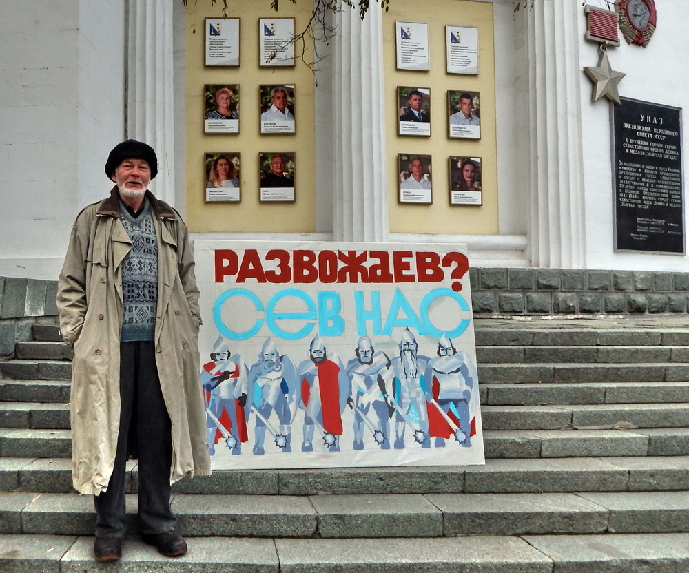 «Губернатор Севастополя Развожаев очень нехорошо поступает с нашим культурным и историческим наследием, с памятниками нашей военной истории. Он уже уничтожил 7–й Бастион в Артбухте. Уничтожаются крепостные стены. Также уничтожается Расстрельная штольня, где были расстреляны 13 арсенальцев гитлеровцами в 1942 году. Мемориальная доска, установленная на портале штольни в советское время, демонтирована и, судя по всему, утилизирована. И все остальные фортификационные сооружения, во всяком случае, те, которые сохранили военные в советское время, разрушены», — констатирует художник.