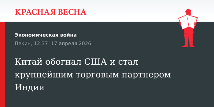 В 2025/2026 финансовом году Китай обогнал США и стал крупнейшим торговым партнёром Индии. Объём двусторонней торговли достиг 151,1 миллиарда долларов, сообщает 16 апреля газета The Economic Times, ссылаясь на правительственные данные.