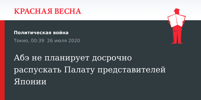 Роспуск Палаты представителей Японии не стоит в планах премьер-министра Синдзо Абэ на это лето, сообщает 25 июля Майнити Симбун.