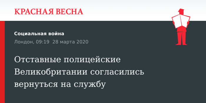 Отставные полицейские Великобритании готовы вернуться на службу и помочь своим коллегам в борьбе с коронавирусом, 28 марта сообщает BBC News.