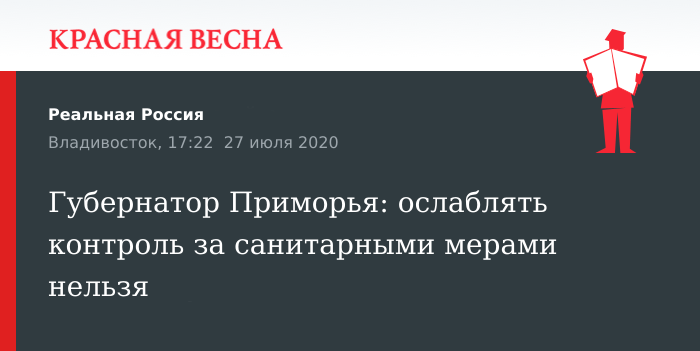 Губернатор Приморья: ослаблять контроль за санитарными мерами нельзя