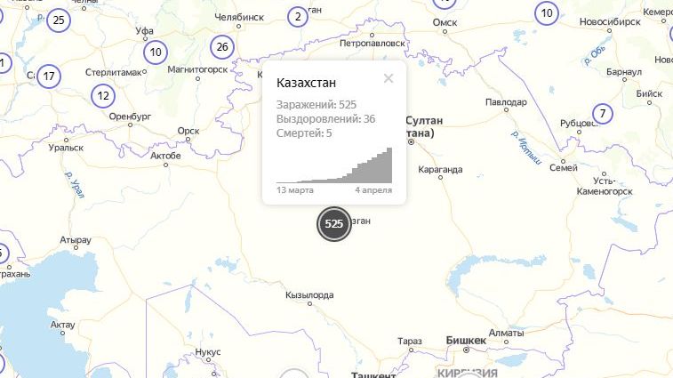 Напомним, что по официальным данным на 12:00 (09:00 МСК) 4 апреля, число заболевших коронавирусом COVID-19 в Казахстане составляет 500 человек.