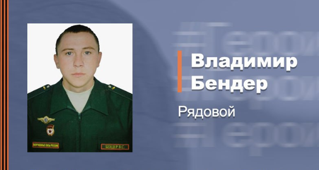 В бою рядовой Бендер лично вскрыл хорошо замаскированную огневую точку, откуда бандеровцы вели огонь по российским войскам. Мгновенно оценив ситуацию, Владимир занял выгодную позицию, дав возможность наводчику немедленно уничтожить позицию нацистов.