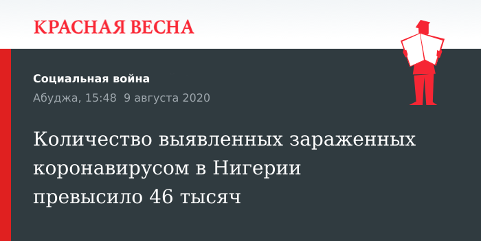 Количество выявленных зараженных коронавирусом в Нигерии превысило 46 тысяч