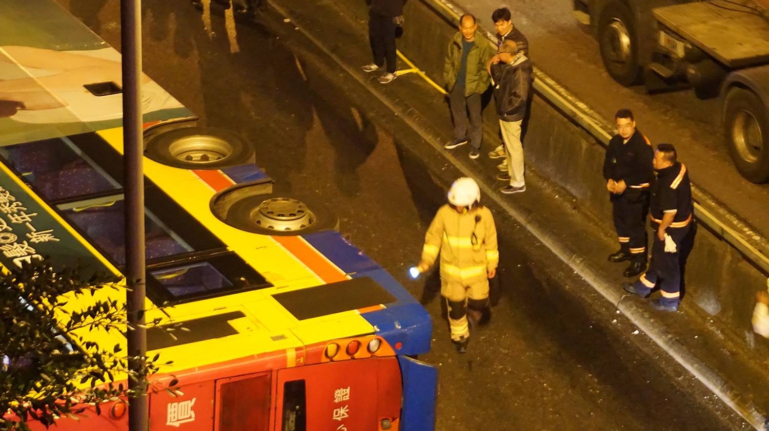«В 20.50 в субботу полиция провинции Лампанг получила сообщение о ДТП с туристическим автобусом. Прибывшие на место полицейские и спасатели обнаружили автобус, перевернувшийся на бок и полностью перегородивший трассу в направлении к Бангкоку. Один пассажир автобуса получил тяжелые травмы, еще четыре человека — травмы средней тяжести, также многие пассажиры получили легкие травмы и ушибы», — говорится в сообщении.