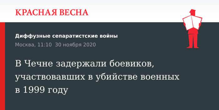 В сообщении указано: «Задержаны уроженцы Чеченской Республики Идалов Асланбек и Идалов Саламбек — участники боестолкновения 4 октября 1999 года в составе бандформирований Шамиля Басаева и Хаттаба с военнослужащими Минобороны России у станции Червленная Шелковского района Чеченской Республики».