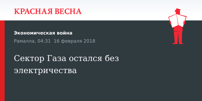 По сообщению источника, электростанция прекратила выработку электроэнергии в результате отсутствия топлива. Палестинский чиновник подчеркнул, что сложившаяся ситуация с электроснабжением в Палестинском анклаве «возникла на фоне ухудшения гуманитарной ситуации в регионе, находящемся под контролем ХАМАС». Мухаммед Табета отметил, что для обеспечения населения сектора Газа электроэнергией необходимо вырабатывать 500 мегаватт в день. «В настоящий момент наблюдается дефицит энергии в 380 мегаватт в день», — пояснил Табетта. Источник утверждает, что «возникшие перебои на электростанции усугубят дефицит энергии [в секторе Газа — прим. ИА Красная Весна] до критического состояния».
