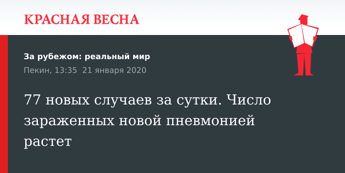 Медики уточняют, что за последние сутки зарегистрированы 77 новых случаев. Вирус распространяется среди жителей городов Ухань, Шанхай и в близлежащих к ним провинциях. Несколько жителей Пекина также обратились за помощью с симптомами, которые могут свидетельствовать о заражении.