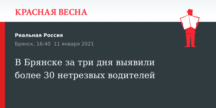 Более 30 водителей с признаками опьянения были выявлены сотрудниками правоохранительных органов за период с 7 по 10 января, 11 января сообщает пресс-служба УМВД России по Брянской области.