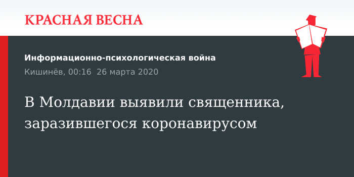 Священник, у которого выявили коронавирус, не входит в клир молдавской православной церкви, сообщили в митрополии Молдавии 25 марта, передает интернет-ресурс NewsMaker.
