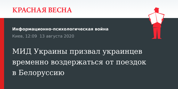 Рекомендацию украинцам не посещать Белоруссию до нормализации ситуации в соседней республике дал министр иностранных дел Украины Дмитрий Кулеба 13 августа, выступая перед журналистами.