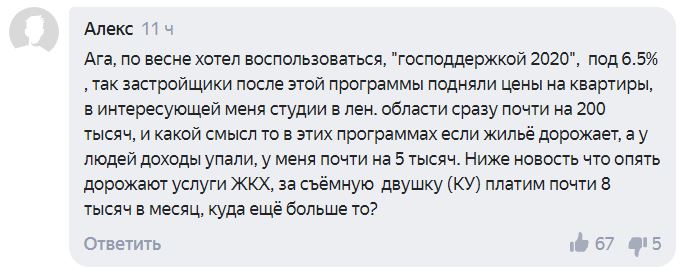 Многие пользователи позитивно оценивают снижение ставки ипотечного процента. При этом основная масса пользователей возмущается ростом коммунальных платежей и снижением покупательной способности граждан в результате эпидемии.