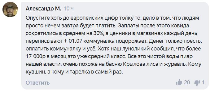 Популярным комментарием оказалась реплика пользователя Александр М.: