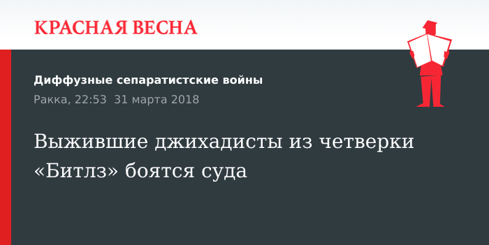 Двое британских подданных — боевики ИГИЛ (организация, деятельность которой запрещена в РФ) — заявляют, что им не будет обеспечен справедливый суд, 31 марта со ссылкой на Associated Press сообщает The Guardian.
