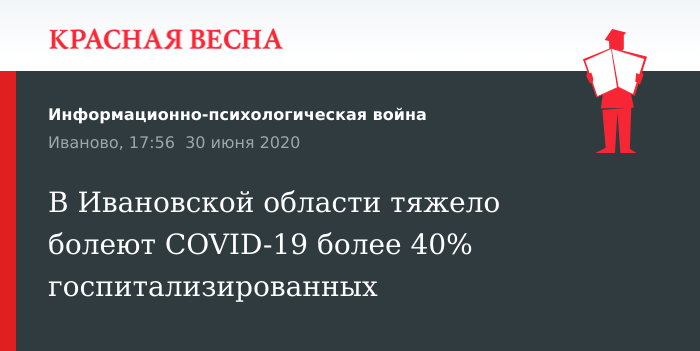 Ранее ИА Красная Весна сообщило, что всего, по данным федерального сайта, на 30 июня в Ивановской области зарегистрирован 4691 случай заболевания новой коронавирусной инфекцией.