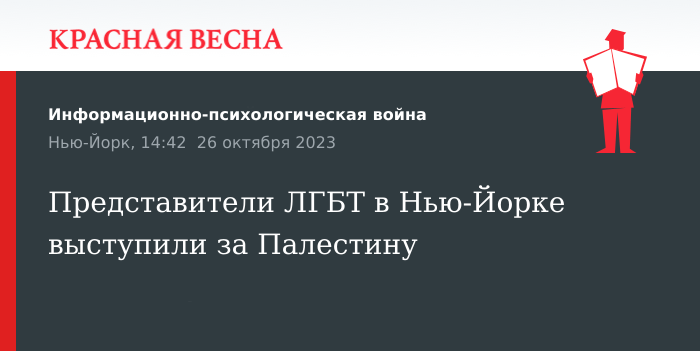 Митинг «Квиры за Палестину» провели 24 октября в Нью-Йорке американские леваки, сообщил журналист Энди Нго 24 октября в социальной сети X.
