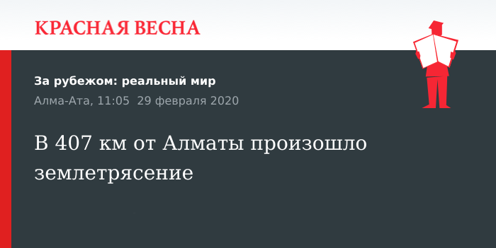 Предыдущее землетрясение казахстанскими сейсмологами было зафиксировано 24 февраля в 01:47 по Гринвичу (07:47 мин по алматинскому времени). Тогда эпицентр землетрясения был расположен в 372 км на юг от города Алма-Ата на территории КНР.
