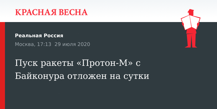 «В связи с необходимостью проведения дополнительных проверок узлов и агрегатов государственная комиссия приняла решение о переносе пуска ракеты-носителя „Протон-М“ с разгонным блоком „Бриз-М“ и российскими телекоммуникационными космическими аппаратами „Экспресс-103“ и „Экспресс-80“ на резервную дату. В настоящее время пуск запланирован на 31 июля 2020 года в 00.25 мск», — говорится в сообщении.
