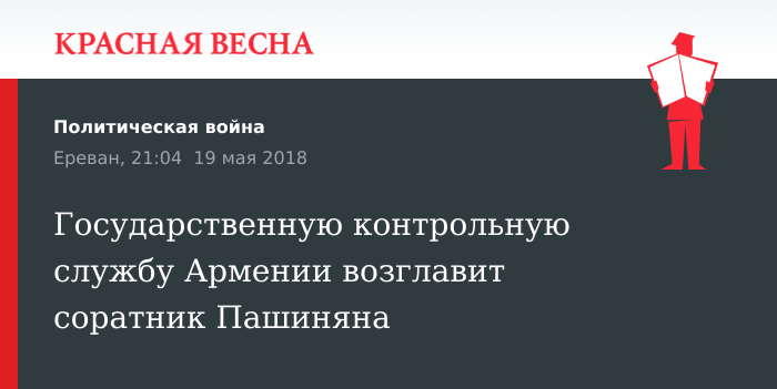 Государственную контрольную службу Армении возглавит соратник Пашиняна