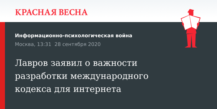 Должен быть разработан кодекс поведения в глобальной интернет-сети, который соблюдался бы всеми странами мира в обязательном порядке. Об этом глава МИД РФ Сергей Лавров заявил 28 сентябра в статье для журнала «Внешнеэкономические связи».