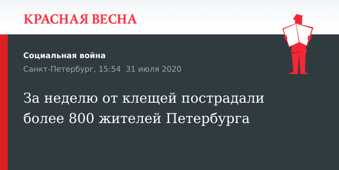 За неделю от клещей пострадали более 800 жителей Петербурга