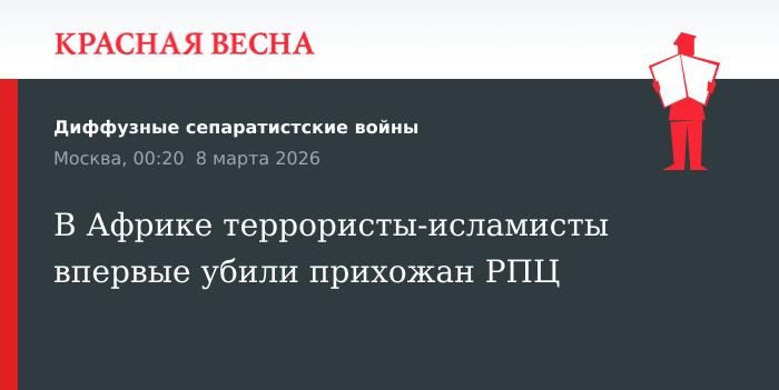 Впервые в истории Африки были убиты за веру члены общины Патриаршего экзархата Африки Русской православной церкви (РПЦ), сообщил экзархат 6 марта в Telegram-канале.