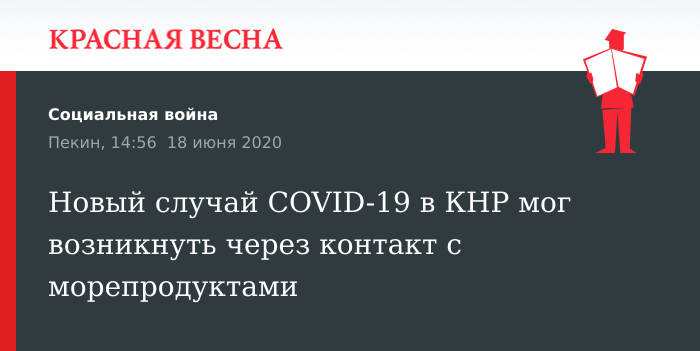 Новый случай заболевания COVID-19 в китайском городе Тяньцзинь мог произойти в результате контакта пациента с замороженными морепродуктами, заявил эксперт из Уханьского университета Ян Чжаньцю 18 июня, сообщает издание Global Times.