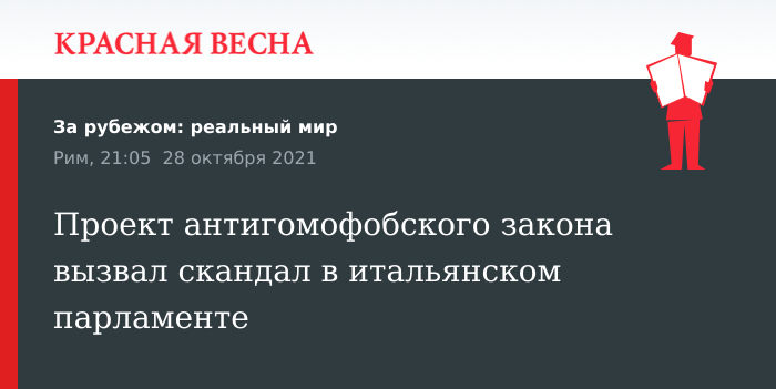 Проект закона противодействия гомофобии и трансфобии вызвал разногласия у депутатов парламента Италии, 27 октября передает газета Avvenire.