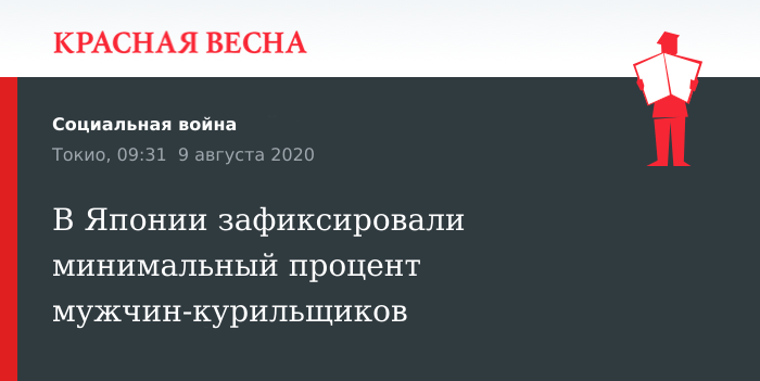 В Японии зафиксировали минимальный процент мужчин-курильщиков