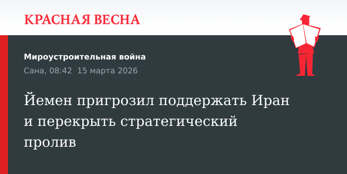 Когда Йемен решит вступить в войну на Ближнем Востоке, поддержав Иран, может быть принято решение о перекрытии для США и Израиля Баб-эль-Мандебского пролива, заявил высокопоставленный йеменский военачальник Абед аль-Тавр, 14 марта передает иранский телеканал Press TV.
