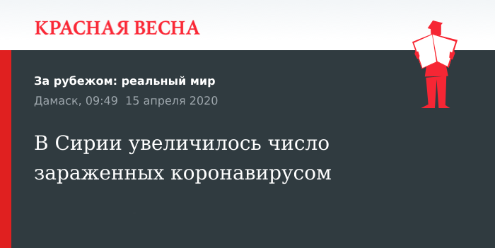 Минздрав Сирийской Арабской Республики (САР) зарегистрировал четыре случае заражения коронавирусом. Общее число зараженных достигло 29 человек. Из них двое скончалось, пять выздоровело.