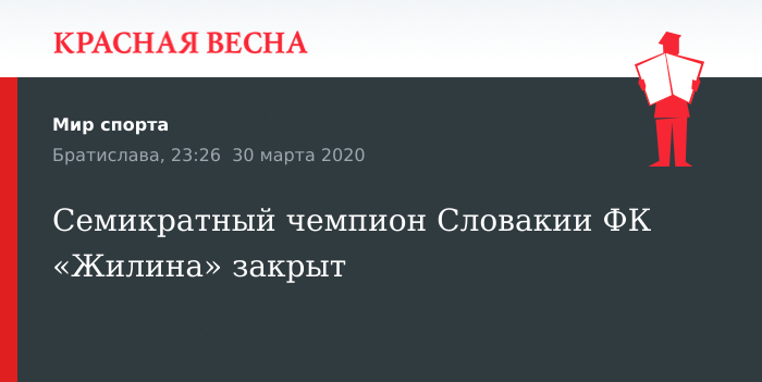 Решение о закрытии клуба «Жилина», семь раз становившегося чемпионом Словакии по футболу, приняло его руководство в связи с банкротством, 30 марта сообщает официальный сайт футбольного клуба.