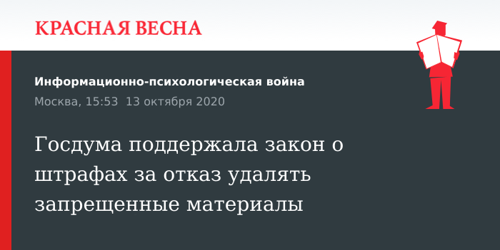 Госдума поддержала закон о штрафах за отказ удалять запрещенные материалы