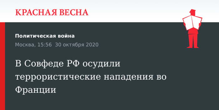 Обращение к французским властям с осуждением серии нападений террористов на граждан страны направила от имени Совета Федерации РФ глава верхней палаты российского парламента Валентина Матвиенко 30 октября, сообщили в пресс-службе Совфеда.