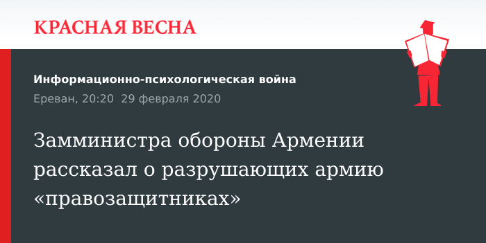 Замминистра обороны Армении рассказал о разрушающих армию «правозащитниках»