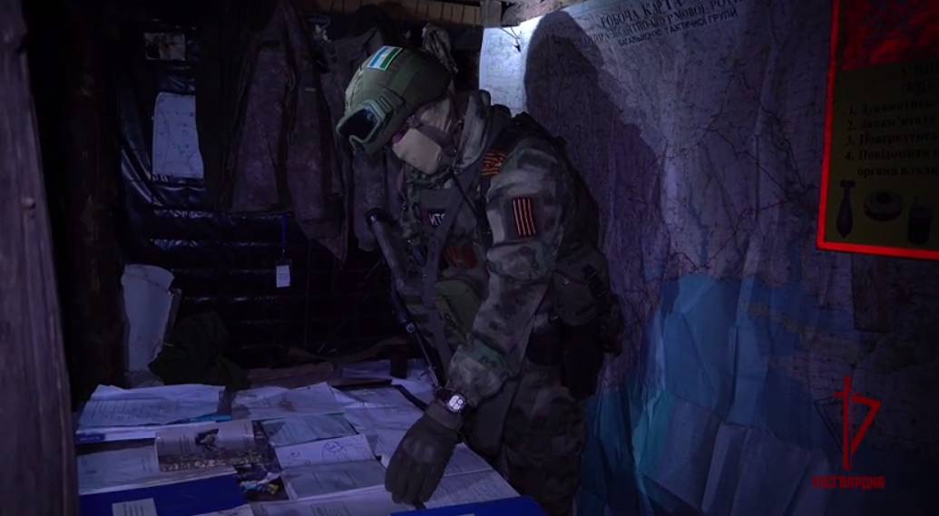 Согласно сообщению, подступы к командному пункту ВСУ были плотно заминированы. Внутри росгвардейцы обнаружили рабочие карты с нанесенной обстановкой, схемы опорных пунктов, списки личного состава и иная документация, а также форма и личные вещи командира роты старшего лейтенанта Вадима Мельниченко.