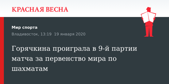 Девятая партия матча на первенство мира по шахматам среди женщин между чемпионкой мира китаянкой Цзюй Вэньцзюнь и русской претенденткой Александрой Горячкиной завершилась 19 января.