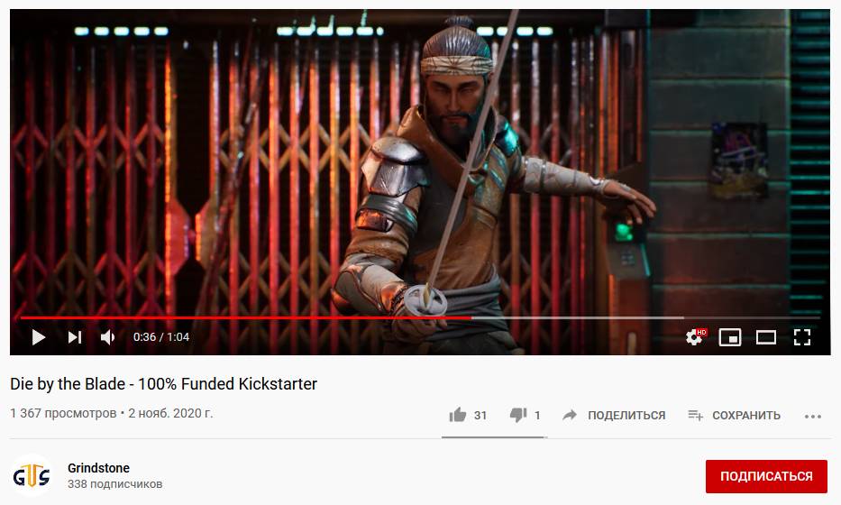 Кампания на Kickstarter по сбору денег на создание видеоигры с поединками на мечах Die by the Blade («Умри от меча»), оказалась успешной и собрала необходимые 20 тысяч долларов за 10 дней до конца сборов, 3 ноября сообщается на сайте «Игромания».