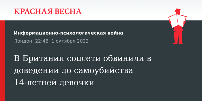 В Британии соцсети обвинили в доведении до самоубийства 14-летней девочки